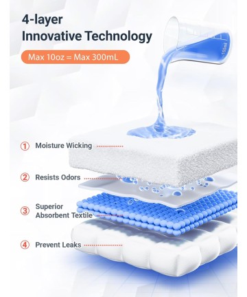 Structură absorbantă cu patru straturi: Strat de drenaj/Strat de prevenire a refluxului/Strat de absorbție a apei/Strat anti-scurgere. Acestea asigură că urina nu curge, oferind protecție multiplă.