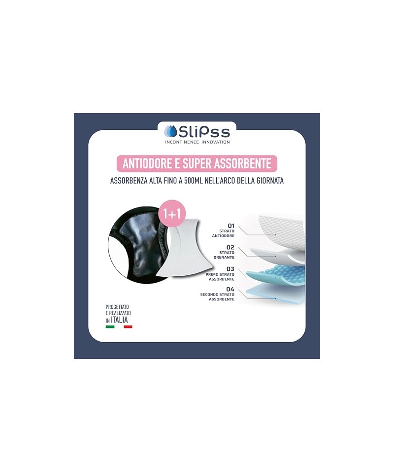 Agent de absorbție pentru pierderi de până la 500 ml. Chiloți absorbanți pentru incontinență adecvați pentru scurgeri de până la 500 ml pentru unică folosință. Urina scursă este absorbită și nu penetrează, menținând lenjeria intimă uscată.
