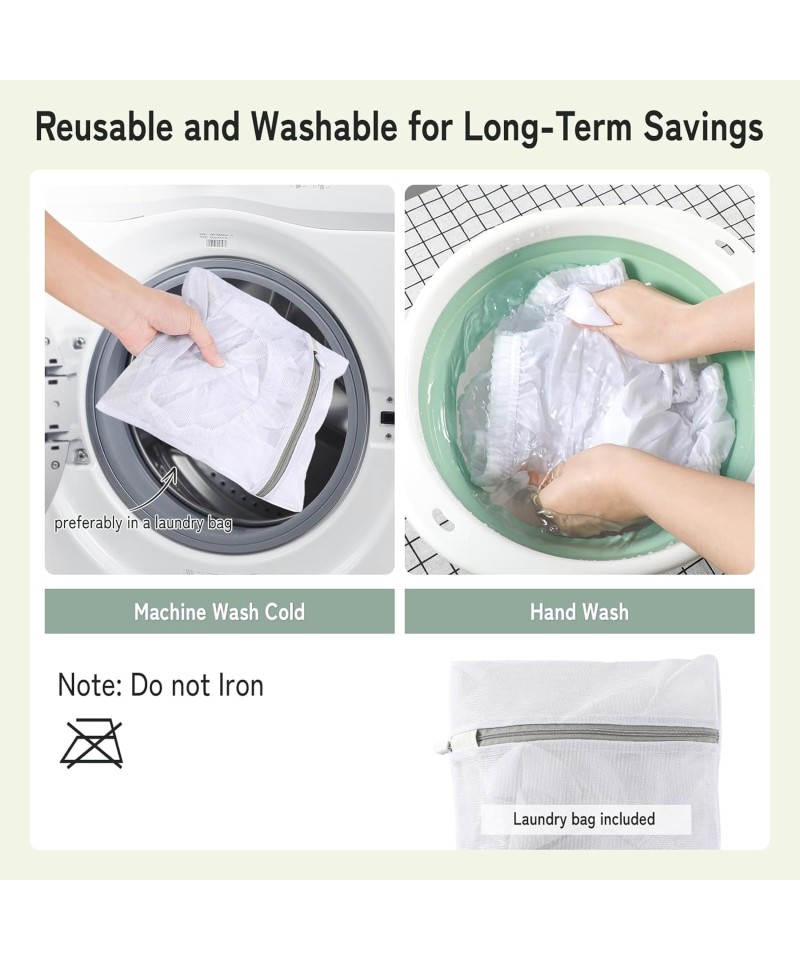 Reutilizabil: Poate fi spălat manual sau la mașină cu sacul de rufe. Uscare la aer liber sau la temperatura mică. Vă rugăm să nu călcați