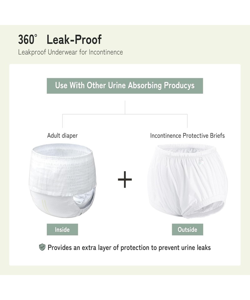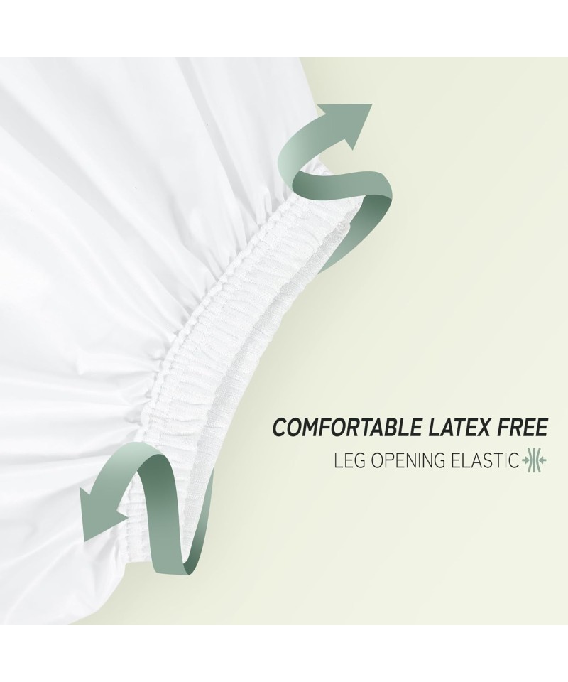 DESIGN CU BANDĂ ELASTICĂ Prezintă un design cu bandă elastică confortabilă care nu exercită presiune pe picioare sau talie, asigurând în același timp că nu există scurgeri de urină