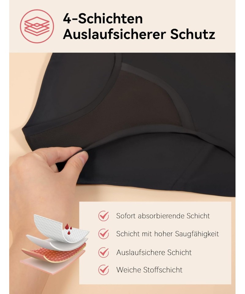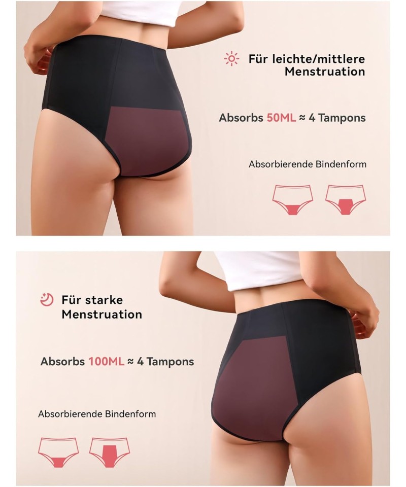 PROTECȚIE ZI ȘI NOAPTE: Tamponul chiloților absorbanți pentru zi are o capacitate maximă de 50 ml, ceea ce este echivalentul a aproximativ 4 tampoane. Versiunea de noapte oferă o capacitate de 100 ml, ceea ce corespunde a aproximativ 8 tampoane. Vă protejează atât ziua, cât și noaptea.