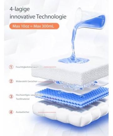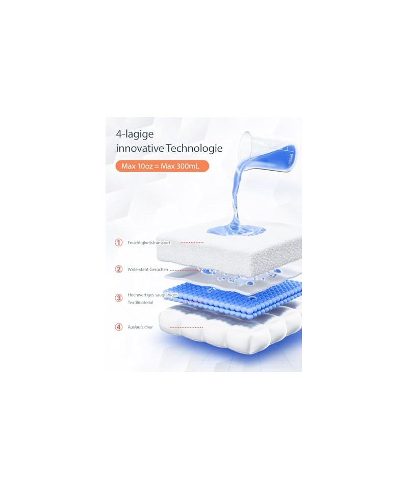 Structura de absortie în 4 straturi: strat de drenaj, protecție împotriva refluxului, strat de aspirație și strat impermeabil - pentru o protecție fiabilă împotriva pierderii de urină și o senzație de uscare.