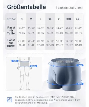 Material de calitate superioară: Pantaloni: 100% bumbac; inserția absorbantă: 70% viscoză + 30% poliester. Șorturile de boxer pentru incontinență pentru bărbați sunt confortabile și respirabile, se potrivesc bine pe picior.