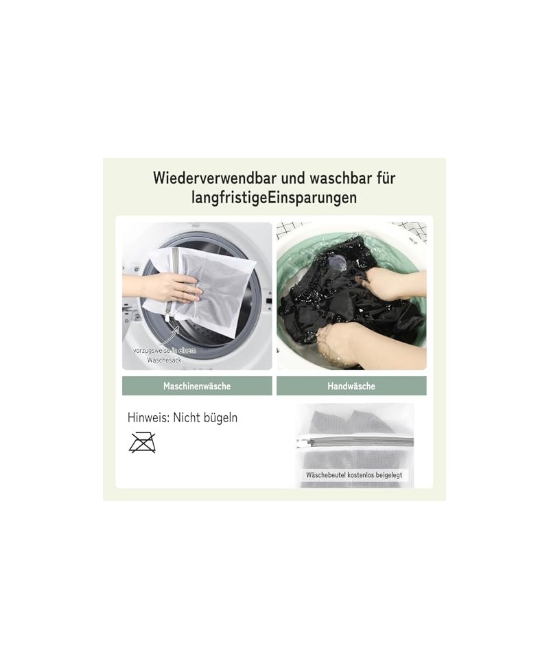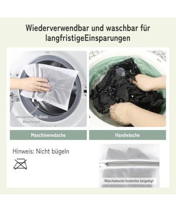 Reutilizabil: Poate fi spălat manual sau la mașină cu sacul nostru de rufe. Uscați la aer sau uscați la temperatură joasă. Vă rugăm să nu călcați