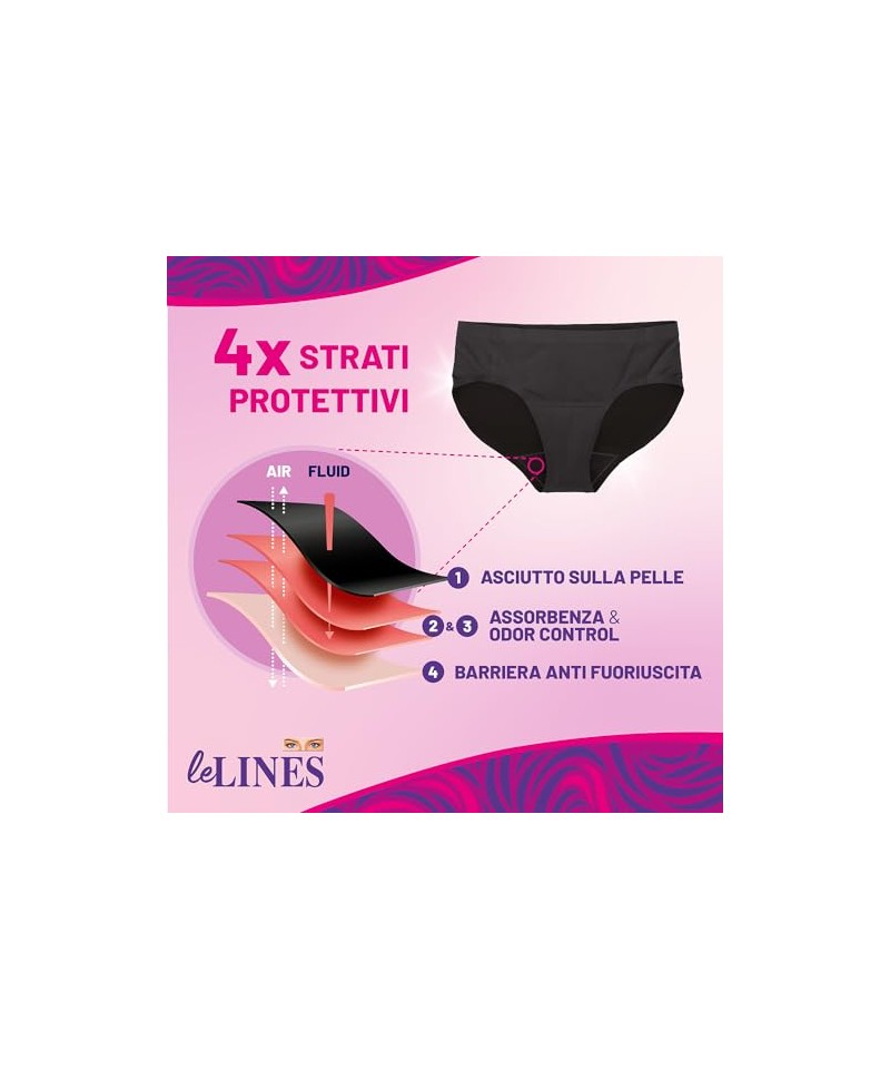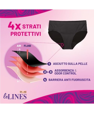 Chiloti absorbanți menstruali LeLines, lavabili și reutilizabili de până la 100 de ori, oferă o protecție de până la 12 ore